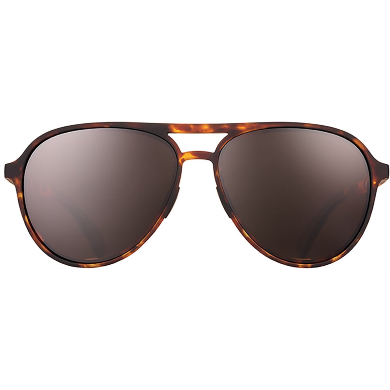 Soar to stylish heights while working out with the goodr Mach G Aviator Lens Sunglasses. Featuring a tortoiseshell frame that stays in place and polarized lenses, these sunglasses add style while reducing glare. The scratch-resistant and shatterproof lenses make these glasses durable enough to wear during the hardest workouts, , and the UV400 protection blocks 100% of harmful UV rays. Lightweight tortoiseshell frame made with a grip coating and silicone inserts for a stay-put fit