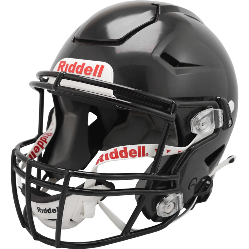 Designed with the Flex System, the Riddell Youth SpeedFlex Football Helmet is engineered to help reduce the force of impact transferred to your young athlete. The helmet features a ventilated design with a Tru-Curve liner system and a 4-point inflation system for protection and comfort and an HS4 face mask with an all-points quick-release attachment system. Made in USA. Flex System engineered into the shell, face mask and face mask attachment system with hinge clips helps reduce the force of impact