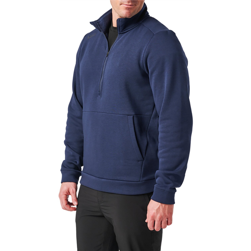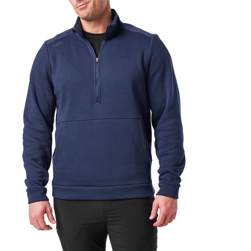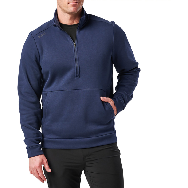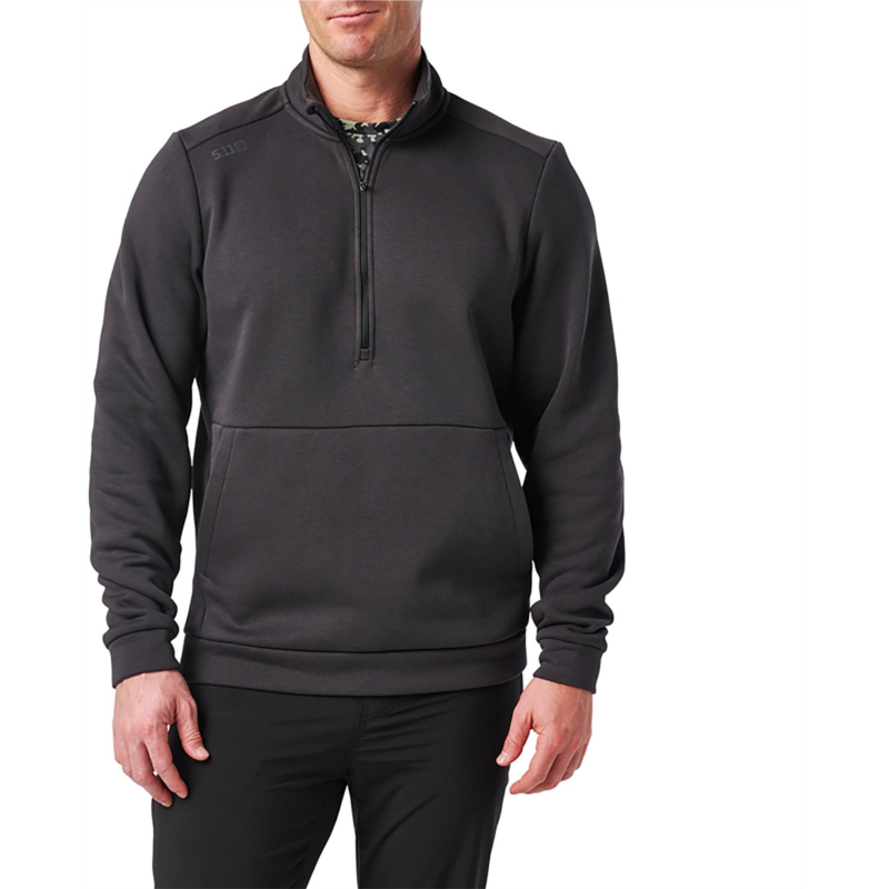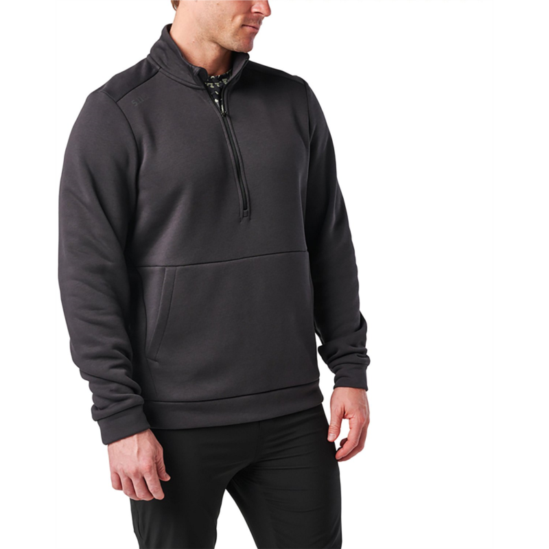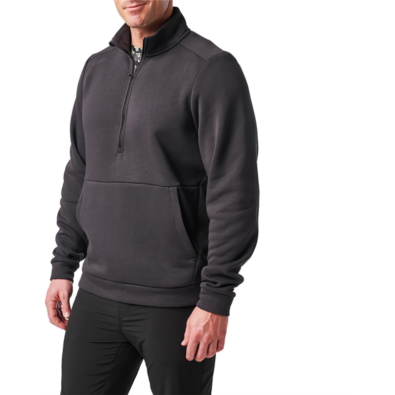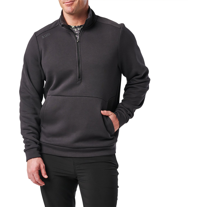 Feel confident and cozy in the 5.11 Tactical Men''s PT-R Arrive 1/4 Zip Fleece Pullover. The 60% cotton and 40% polyester fleece construction offers a soft feel all day, and the logo reflective heat transfer at right front shoulder displays your brand pride. The 1/4-zip closure with chin guard reduces irritation, and the front kangaroo style hand pockets include an internal stash pocket for concealing items. 60% cotton and 40% polyester fleece material provides comfort and durability