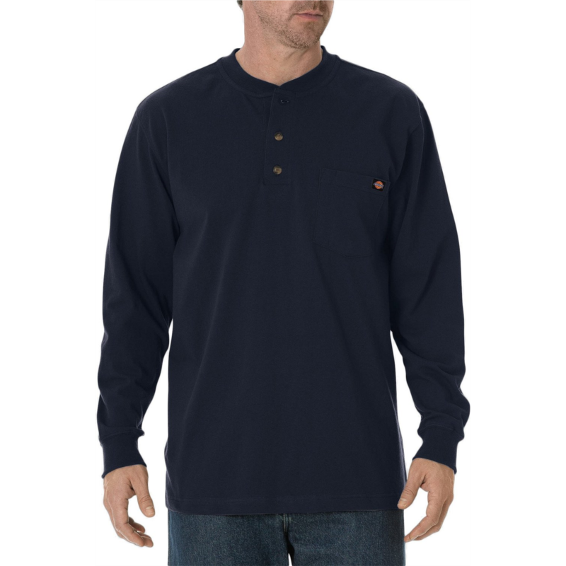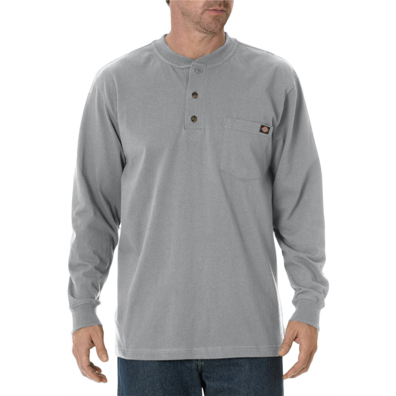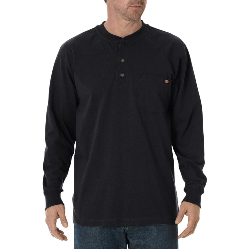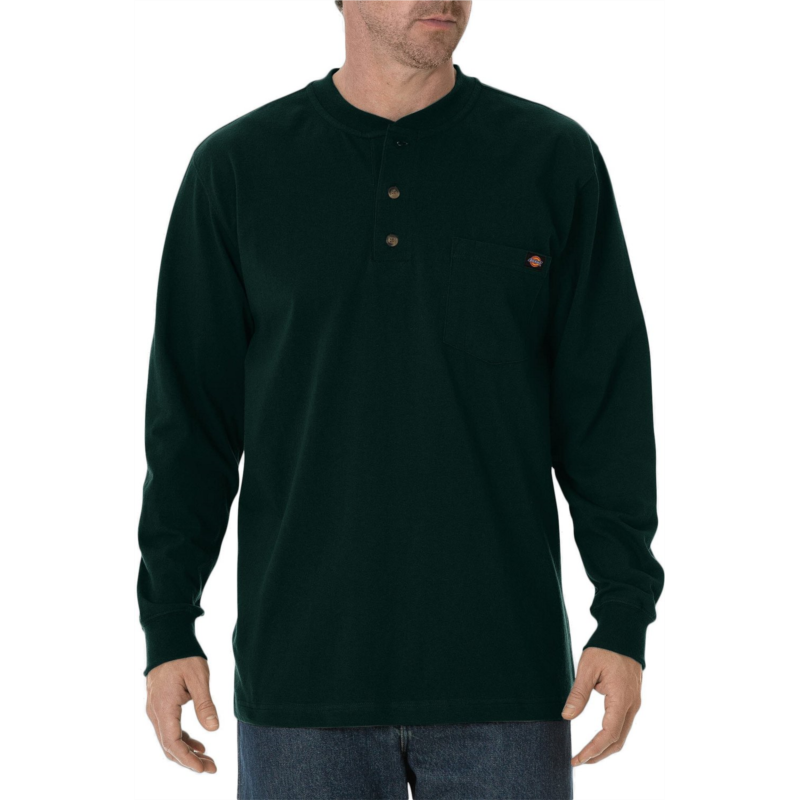 The Dickies Men''s Long Sleeve Heavyweight Henley is made of comfortable, heavyweight 100% jersey-knit cotton and features a taped neck and shoulder seams for durability. This henley features a 2-button closure and a tagless back neck for comfort. Left-chest pocket with a Dickies logo. Made of comfortable, heavyweight 100% jersey-knit cotton
