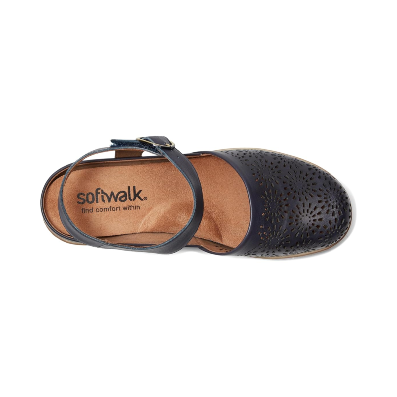 - Step into elegance wearing the SoftWalk Mabelle Perf-where timeless style meets all-day comfort! Crafted from premium leather, its upper, lining, and insole radiate sophistication while ensuring durability. The adjustable buckle on the ankle strap provides a personalized, secure fit, offering unmatched stability with every step. The perforated design enhances breathability, keeping your feet fresh throughout the day. A sturdy rubber outsole ensures dependable traction, making it perfect for both workdays and weekend strolls.