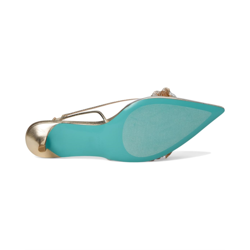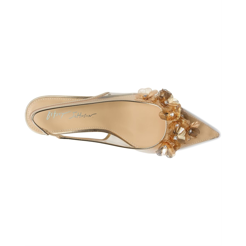 - The Blue by Betsey Johnson Robin pumps are an elegant staple with their flower embellishments. These heeled sandals are made of a faux leather upper, rubber insole, and faux leather lining. The slingback strap offers added comfort. Match your party outfits and chic dresses with these pump heels.