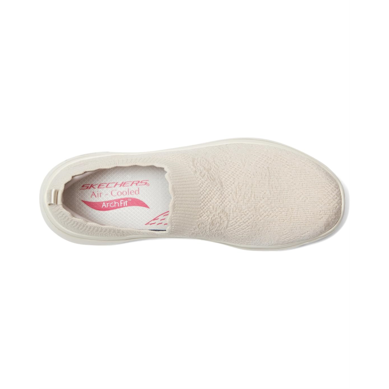 - Experience ultimate comfort and support wearing the SKECHERS Performance Go Walk Arch Fit 2.0 Rosa Linda. This laceless design features knit upper with scalloped collar, polyester lining, patented Skechers Arch Fit insole system with podiatrist-certified arch support, and lightweight, responsive ULTRA GO cushioning. The removable insole helps mold to your foot to reduce shock and increase weight dispersion. High-rebound Comfort Pillars offer added support while the Stretch Fit design gives sock-like comfort.