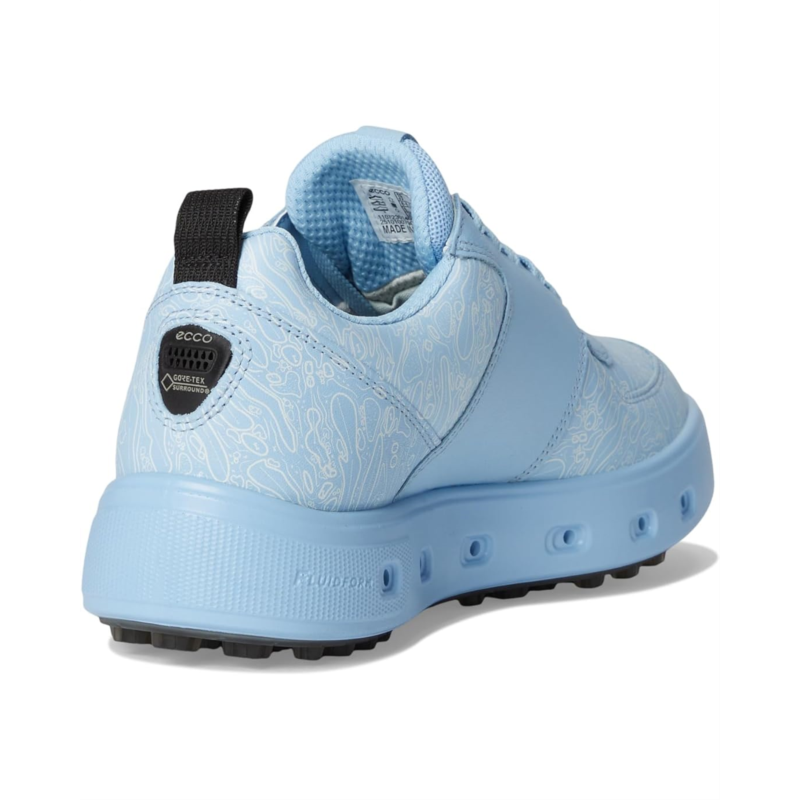 - Feel the modern comfort wearing the ECCO Golf Street 720 DS GORE-TEX Waterproof Golf Shoe. Crafted from leather upper, nylon lining, and EVA insole, this pair of shoes features round toe, lace-up closure, GORE-TEX SURROUND for waterproof protection and breathability to keep your foot dry and comfortable on and off the course. Golf course-inspired print on the ECCO Leather for all-day, premium street style, innovative midsole channels - made with ECCO FLUIDFORM Direct Comfort Technology - enable air ventilation towards the sole of the foot. E-DTS TWIST outsole offers multi-directional traction and has slightly larger traction bars in high-abrasion areas.