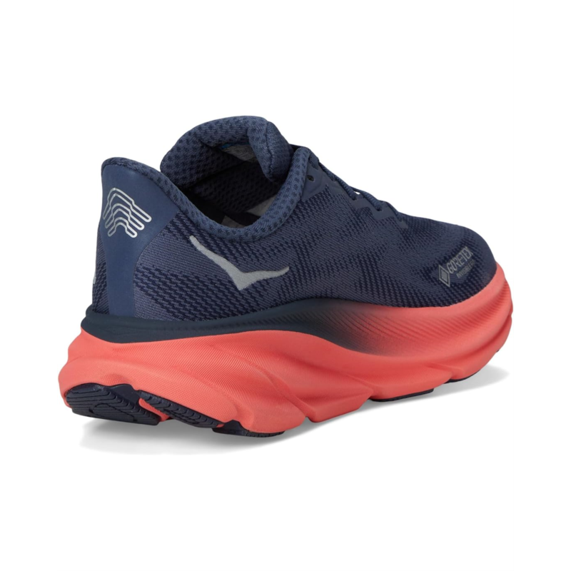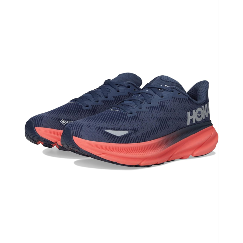 - Cushioned for all-day comfort, the Hoka Clifton 9 GTX shoes are designed to offer you superior comfort and performance. Ideal for walking and running, the traction pods and GORE-TEX invisible fit make them a perfect weatherproof footwear choice. For added style and functionality, they feature 360-degree reflectivity. The closed mesh construction provides light ventilation, keeping your feet cool and comfortable.