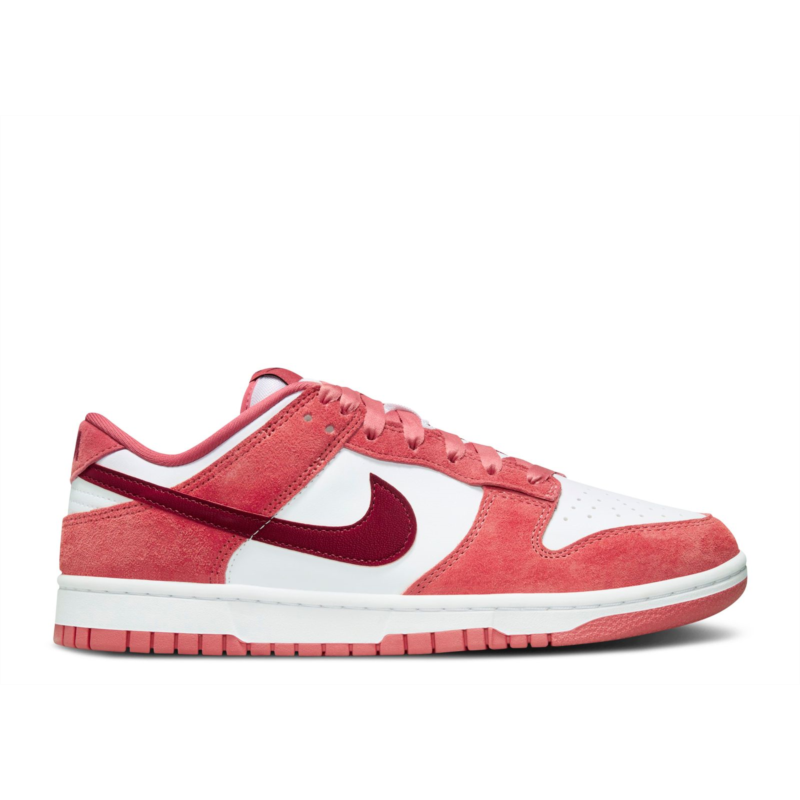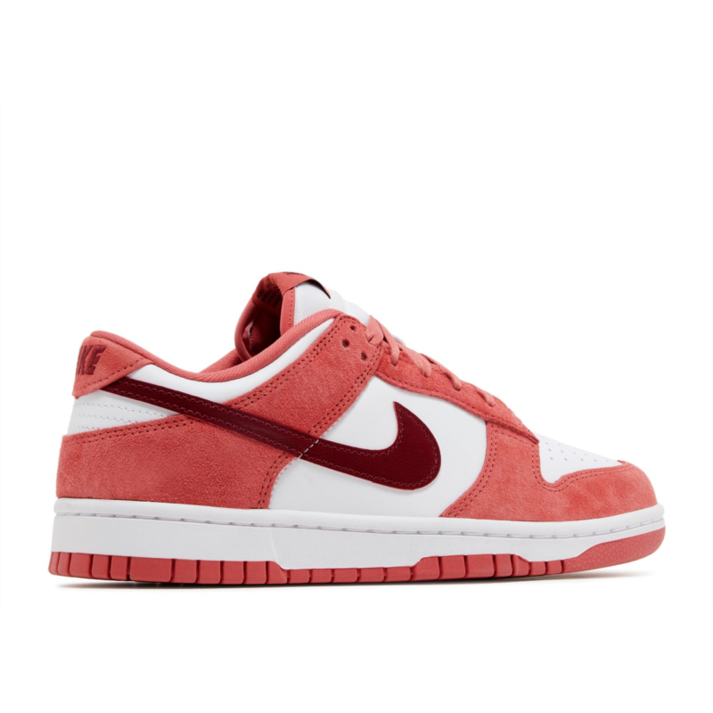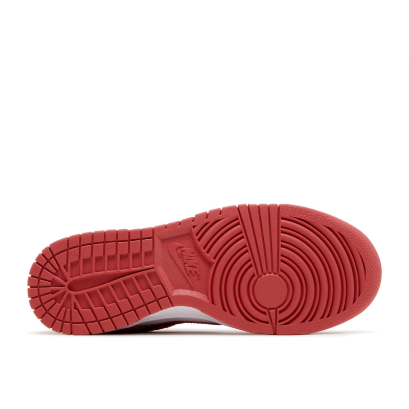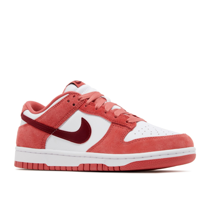 The Nike Women''s Dunk Low ''Adobe'' showcases soft red suede overlays on the front and back against a clean white leather upper. The Nike Swoosh and additional branding arrive in a deep crimson hue. A rubber cupsole supports the low-top and features stitched sidewall construction.