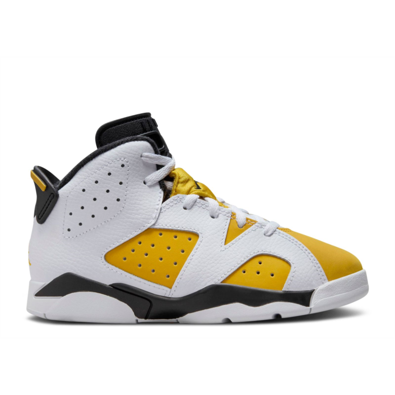 The Air Jordan 6 Retro PS ''Yellow Ochre'' has a yellow nubuck base with white tumbled leather overlays. A dual-hole tongue pairs with a spoiler-like back tab to make it easy to put your shoes on or take them off. The Jumpman logo graces the lace jewel and back of the heel. A black foam midsole is supported by a durable white rubber outsole for that last bit of contrast.