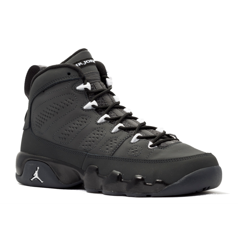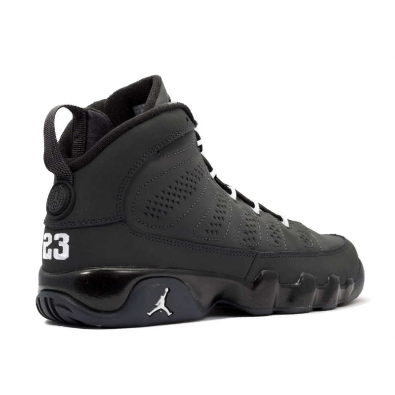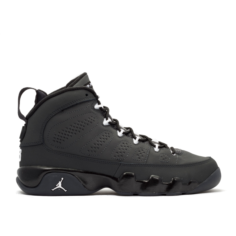 The Air Jordan 9 Retro BG ‘Anthracite’ offers a stealthy colorway of the classic silhouette, featuring a premium nubuck finish dressed in complementary black and Anthracite tones. The subdued coloring is accented by contrasting pops of white on the eyelets and various branding elements, highlighted by a Jumpman logo hit on the midsole and ‘23’ embroidery at the heel.