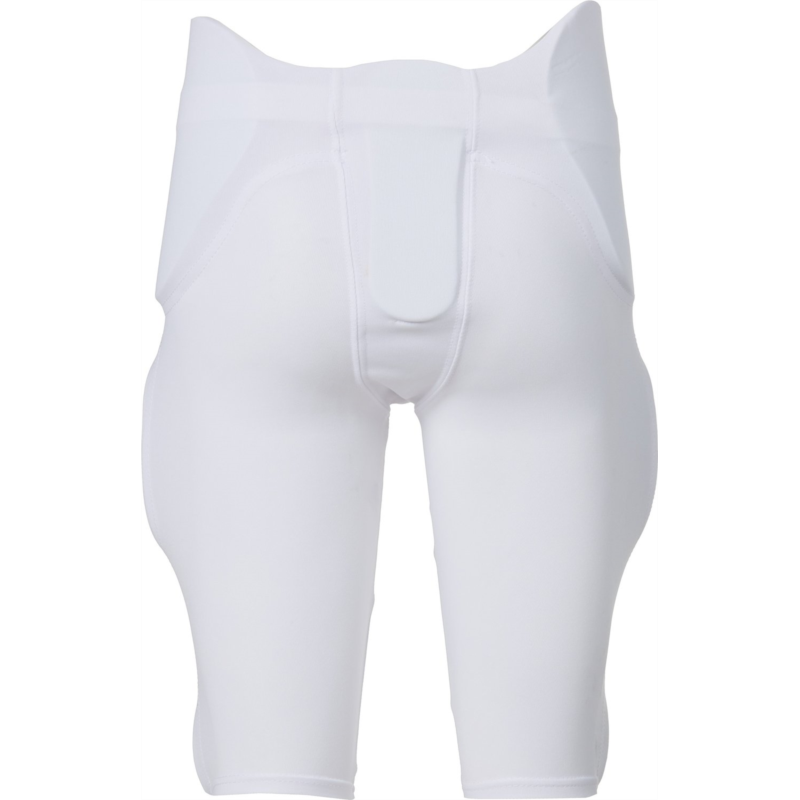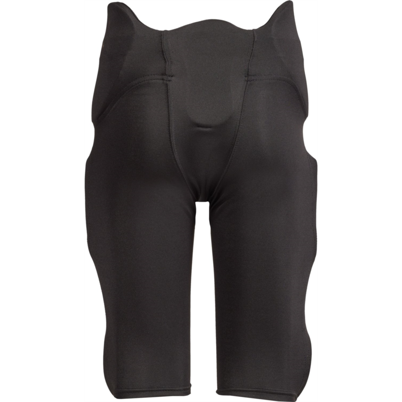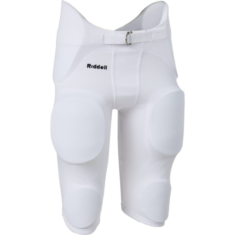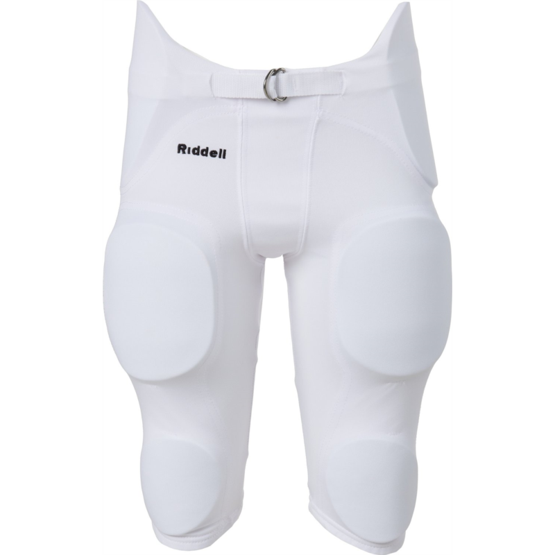 He can head to practice wearing the Riddell Youth Fully Integrated Football Pants. These pants feature a polyester construction for durability and sewn-in hip, tail, thigh and knee pads that keep your legs safe. The thigh pads have reinforced plastic cores for added protection. Polyester construction offers durability