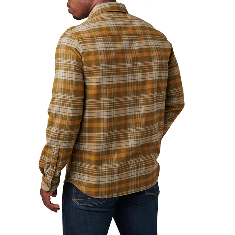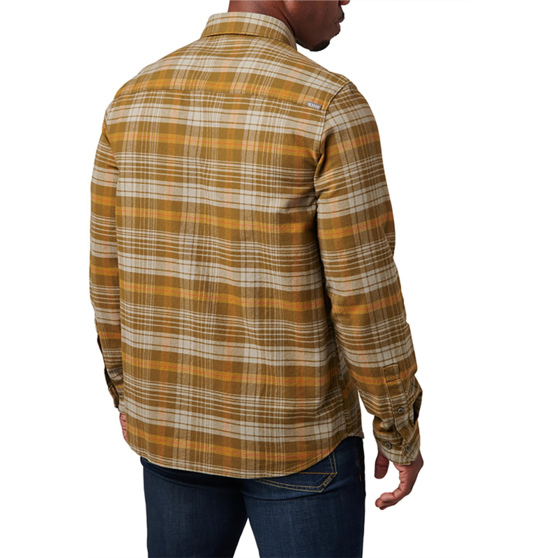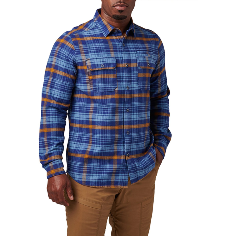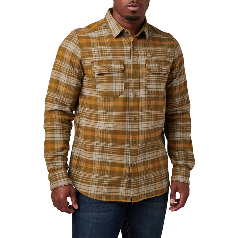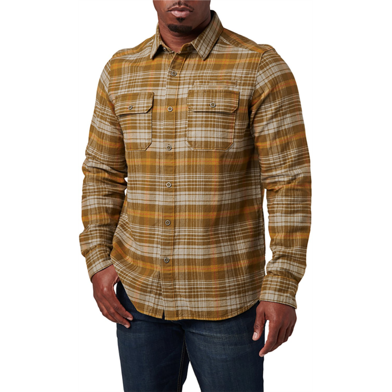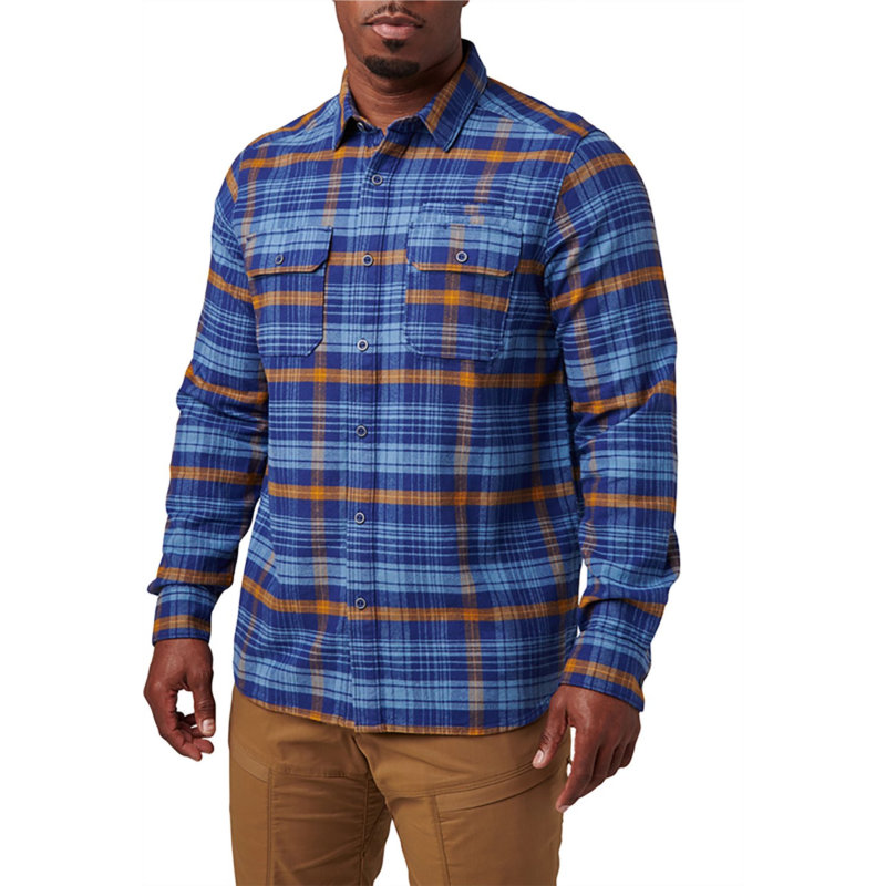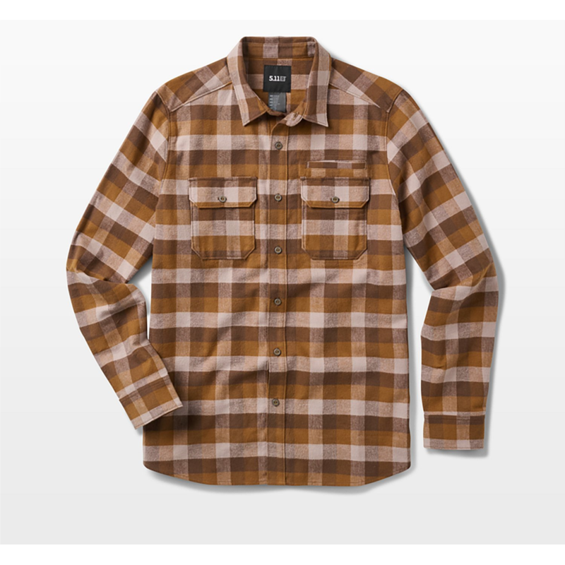 Feel confident wherever youa€re going with the 5.11 Tactical Men''s Lester Heavy Weight Flannel Plaid Long Sleeve Shirt. The 100% cotton yarn construction offers a soft feel, and the plaid design adds a fashionable touch. The woven label at back right shoulder displays your brand pride, and the sleeve placket with adjustable snap cuffs help prevent the sleeves from sliding up. 100% cotton yarn material provides comfort