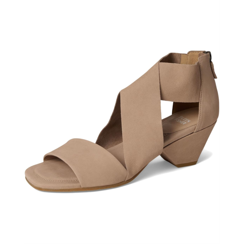 The Eileen Fisher Junie is a perfect summer sandal with soft unlined leather straps and a back zipper for easy entry. It has an asymmetrical heel wrapped in leather, for poised elevation.