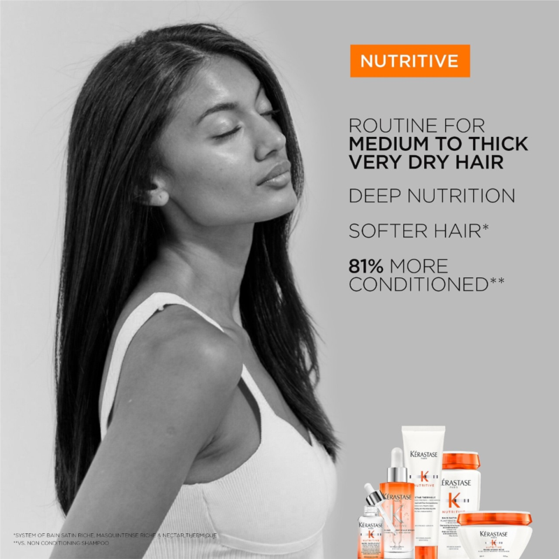 Clinical Results: In a controlled study using Nutrititive Hydrating Shampoo for Medium to Thick Dry Hair, results showed: