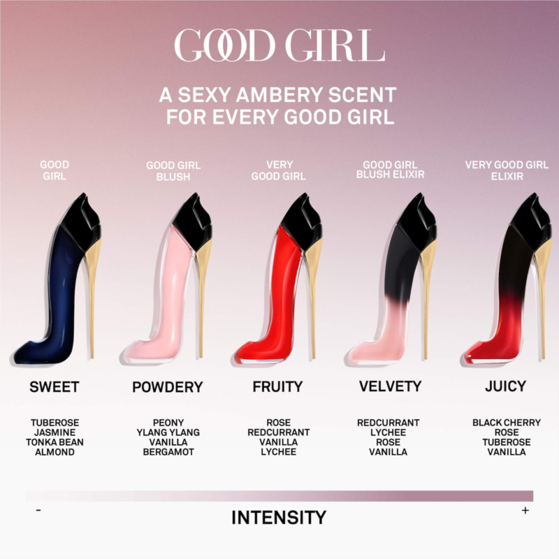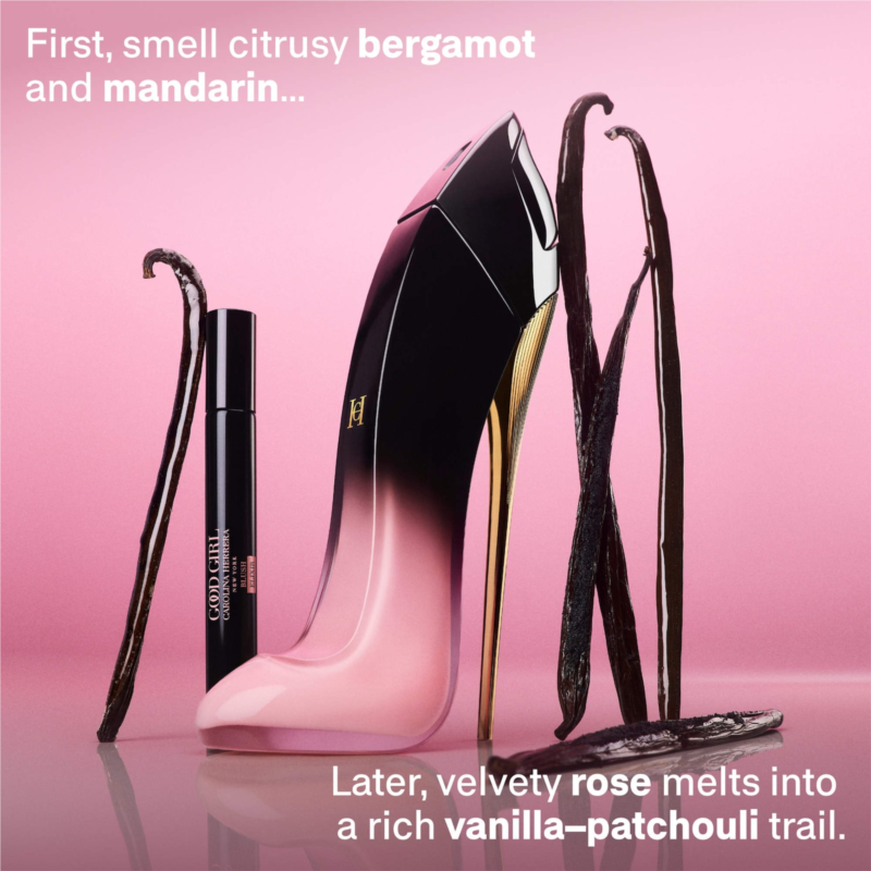 About the Fragrance: The newest addition to the Good Girl family, this exotic elixir reveals the multifaceted nature of modern femininity with a seductive blend of ravishing rose, voluminous vanilla, and smoky, scintillating patchouli.