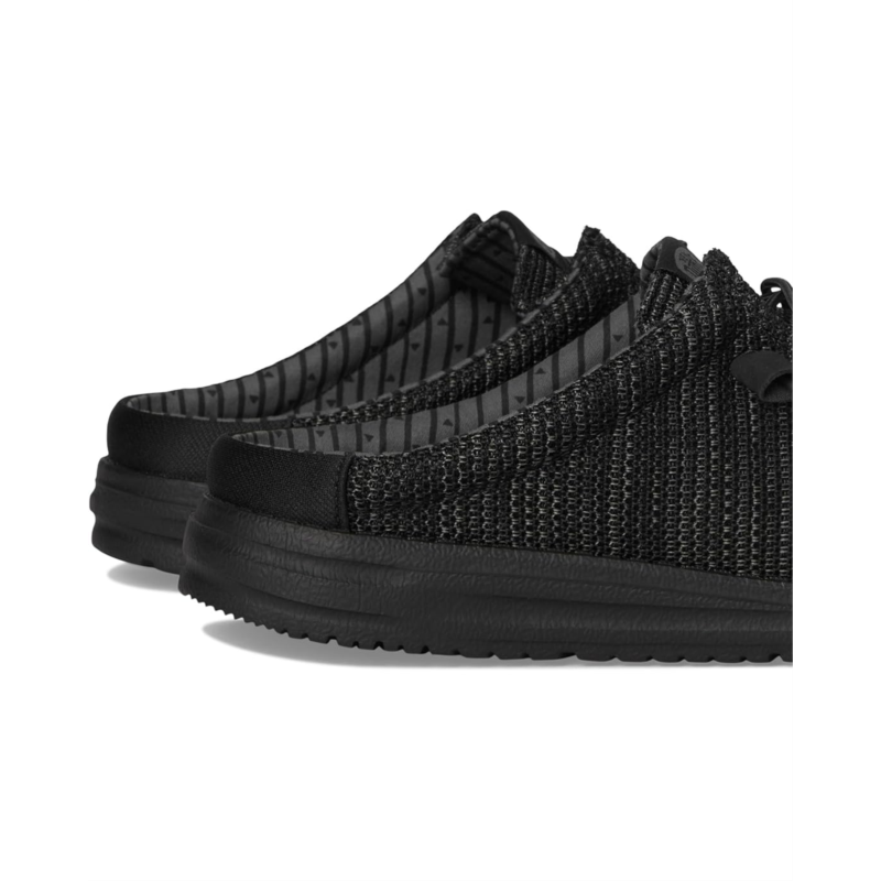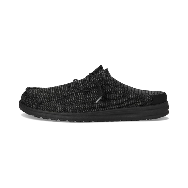 - Easy, breezy, textile makes this slip-on Hey Dude Wally Slip Stretch Sox ready to roam. Easy-on elasticized laces, EVA outsole, and removable insole provide go-to comfort. Designed with you in mind. This Wally shoe boasts the comfort of walking on clouds. Featuring an insole that reduces odors, a lightweight outsole, and breathable cotton fabric. The removable memory foam cushioned insole provides maximum comfort and reduces sweating and odors. Crafted from polyester upper. textile lining, and round toes.