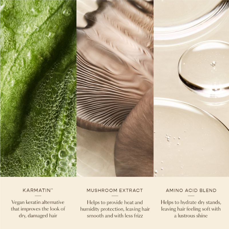 - Mushroom Extract: Helps to provide heat and humidity protection, leaving hair smooth and with less frizz.