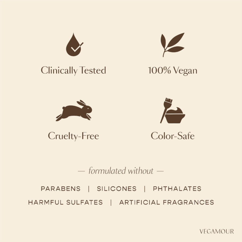 Fragrance Description: Vegamour’s sensorial scent contains notes of Jasmine, Ylang Ylang, and Tahitian Vanilla.