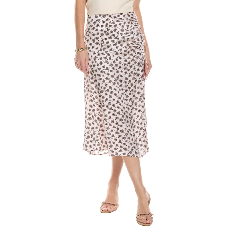 Introducing the stunning ''Maje Midi Skirt'' from the renowned brand Maje. This gorgeous skirt falls approximately 34 inches from the waist to hem, making it the perfect length for a variety of occasions. The design features a ruched drawstring front and split hem, adding a touch of elegance to your look. The skirt comes in the color/pattern Imprime Mini Palmier Rose, adding a trendy and vibrant touch to your outfit. Made from 100% polyester, this skirt is both stylish and comfortable. Pair it with your favorite top and heels for a sophisticated look. Please note that size selections are European, so be sure to reference the size chart for US conversions. The model is 5''9 and is wearing a size T34. Measurements may vary slightly by size. The skirt features a left side seam zipper closure for easy wear. Dry clean only. Imported. Add this beautiful Maje Midi Skirt to your wardrobe for a chic and fashionable look.