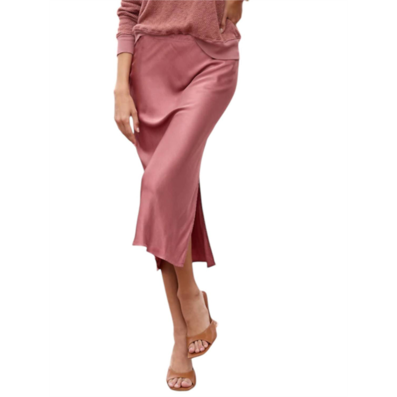 The midi length skirt is here to stay and we especially love this style.Midi Length Skirt. Slight Left Leg Slit for Added Detail. Silky Smooth Feel. 100% Rayon. Ethically Made in LA.