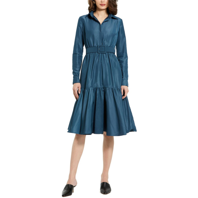 Mac Duggal faille collared midi dress with belt