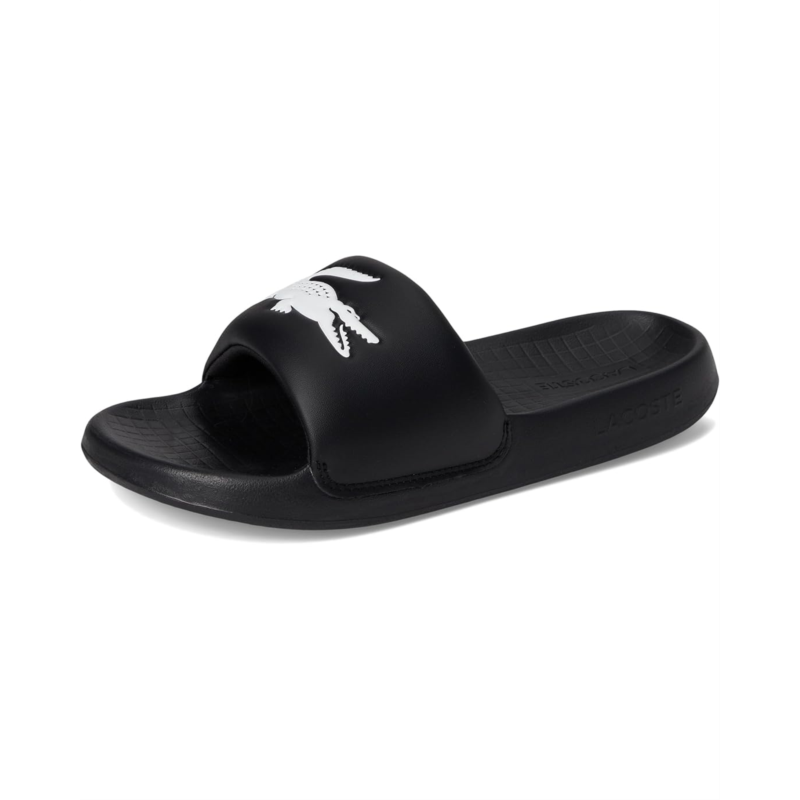- Step into comfort wearing the Lacoste Serve Slide 1.0. Crafted from EVA upper, lining, and insole, this pair of footwear features open round toe, sleek, easy slip-on style that pairs perfectly with casual wear for a laid-back yet refined look, soft, cushioned footbed that provides all-day comfort, whether you''re lounging by the pool or on the move, and iconic brand logo on the vamp adding a touch of sophistication to every step.
