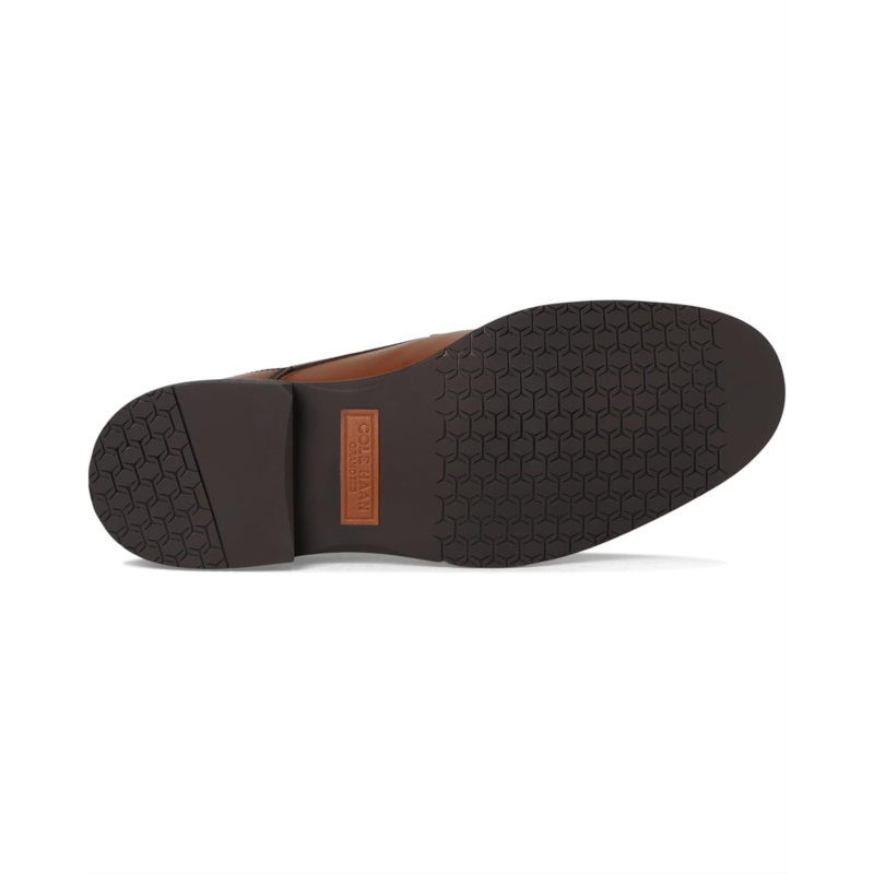 - Cole Haan Craft and DNA is exemplified through meticulous upper burnishing, double-row stitch detailing, internal leather lining (upper and footbed), and the Cole Haan leather inlay in the midfoot bend. Smart outsole design featuring a multi-direction flex pattern mimic the foot''s natural motion. Move smoothly from heel to toe with less fatigue. Plain toe oxford upper design.