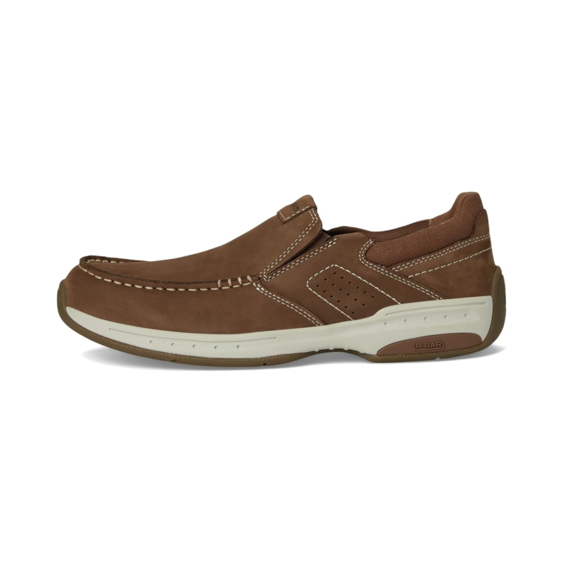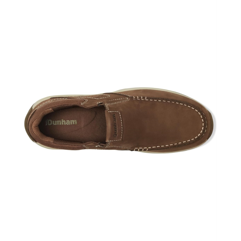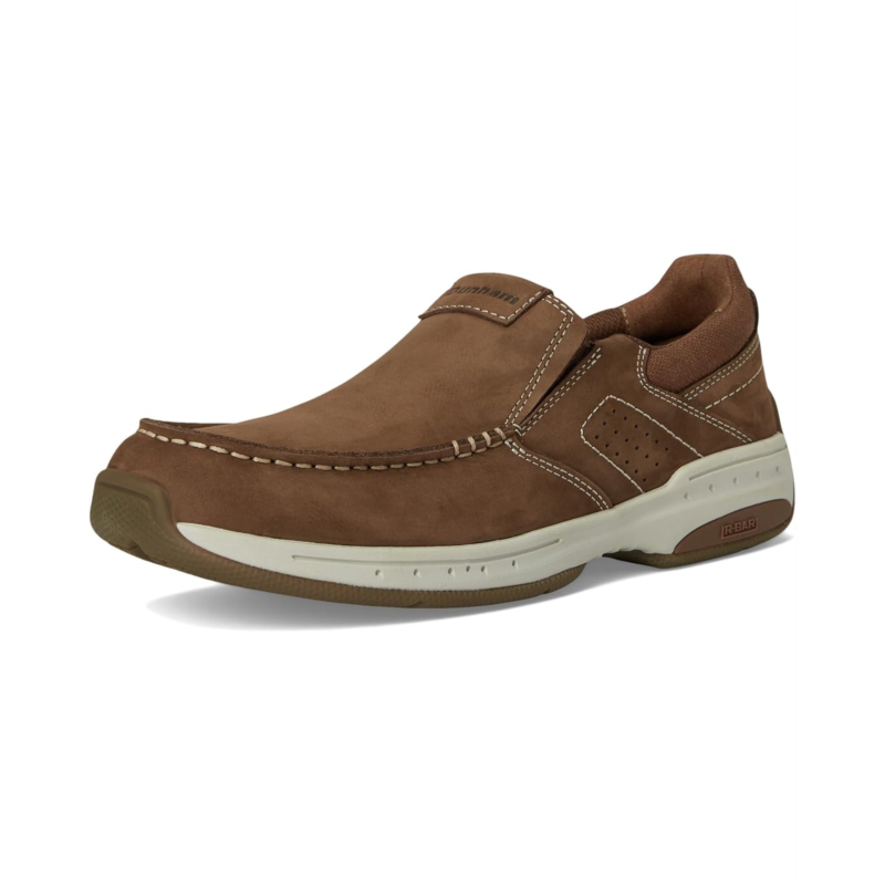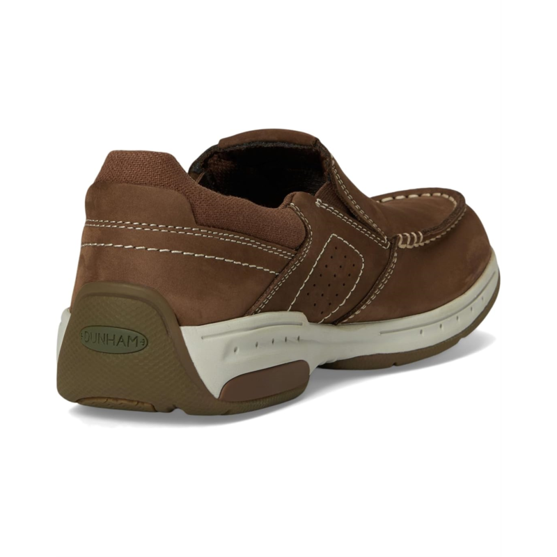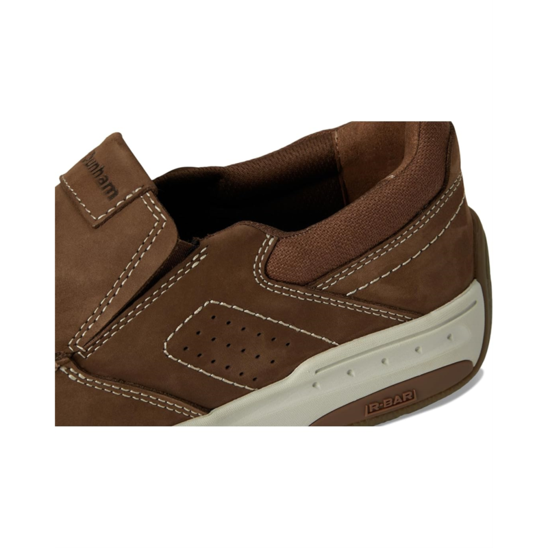 - Step up the style game and walk with enhanced comfort wearing Dunham Waves Shoes. The slip-on style shoes are crafted with a leather & textile upper, textile lining, EVA midsole, and an orthotic-friendly removable EVA footbed for a custom fit. The External Heel stabilizer (R-Bar stability bar in the heel) ensures added stability as you walk.