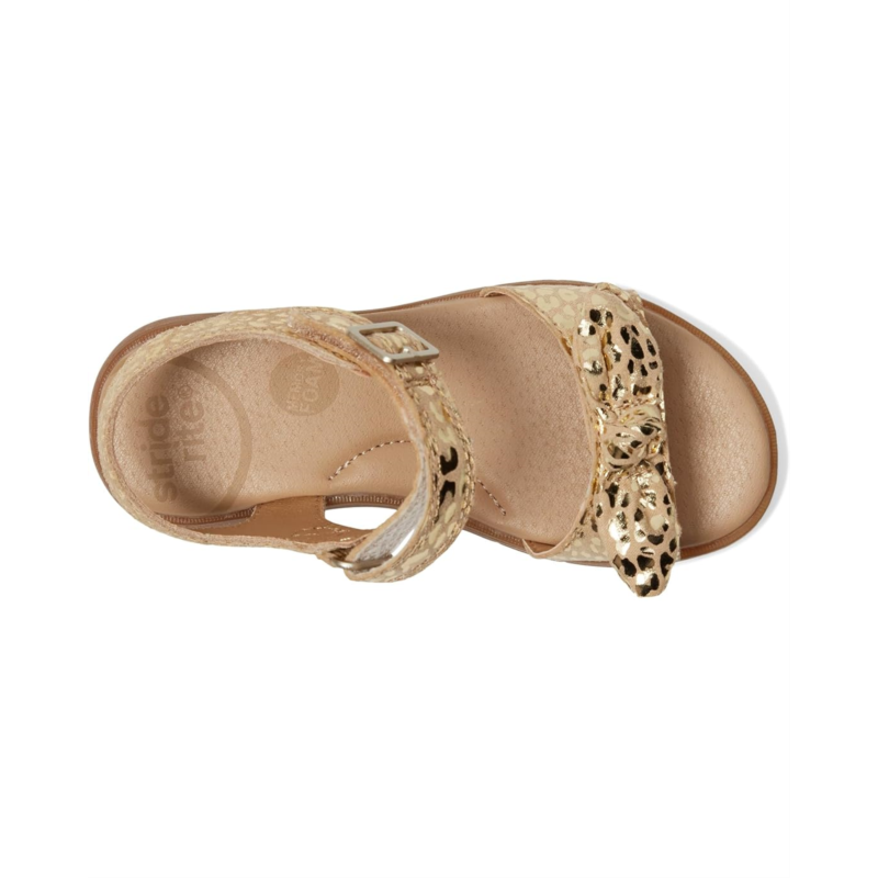 - Finish her warm weather look with the Stride Rite SR Whitney. These leather sandals are crafted with a buckle adorned hook and loop closure, knotted bow tie at the top, memory foam footbed and traction grip soles to keep her step cool and cute.