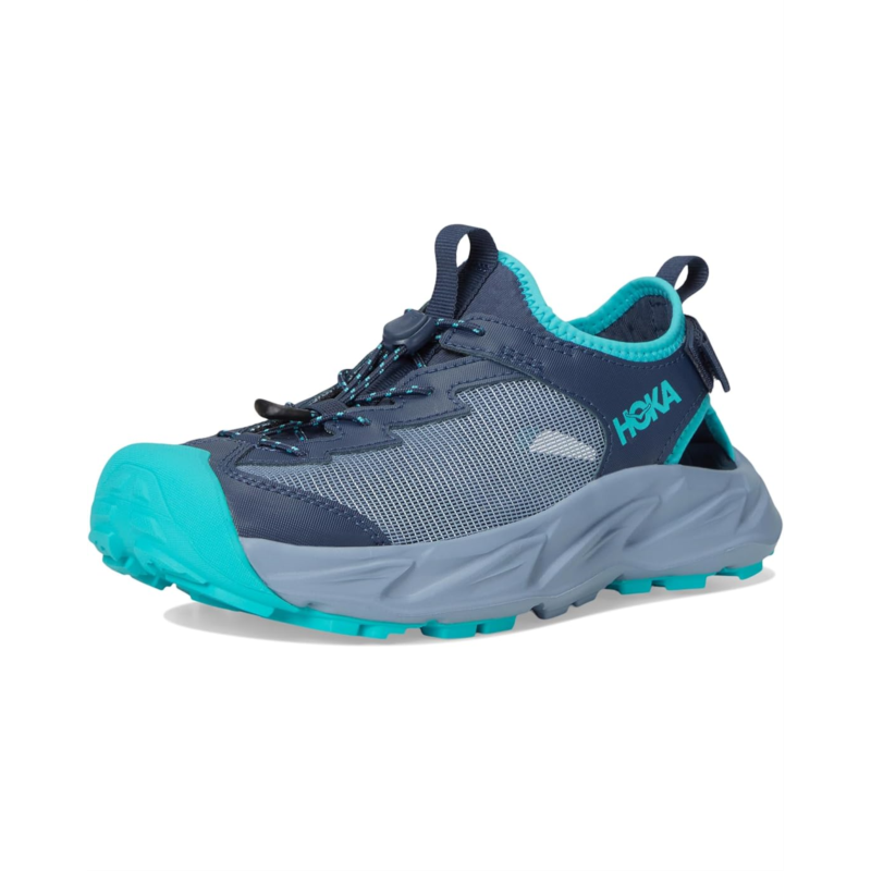 - Geared for your little explorer, the Hoka Kids Hopara 2 tackles mud, dirt, and rocks with amphibian-like ease. Packed with all the cushy comfort and grippy goodness required to keep up with active kiddoes, this quick-dry sandal is sure to make a splash at summer camp. Sporting a kid-friendly toe cap and toggle closure for easy on/off. Featuring round toe, pull tab on tongue, and back, and brand detailing on the sides, and heel counter.