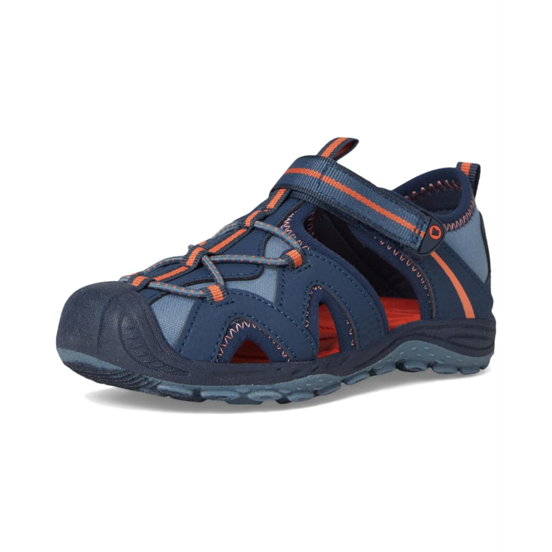 - Merrell Kids Hydro 2.0 are made for mischief, built to last. Crafted from water friendly synthetic upper, quick drying lining, and EVA insole, this pair of shoes features round toe, hook-and-loop closure for a secure fit & easy on/off, soft EVA molded footbed for all day cushioning and comfort, flexible, non-marking extra grip outsole with a toe bumper for traction and durability.