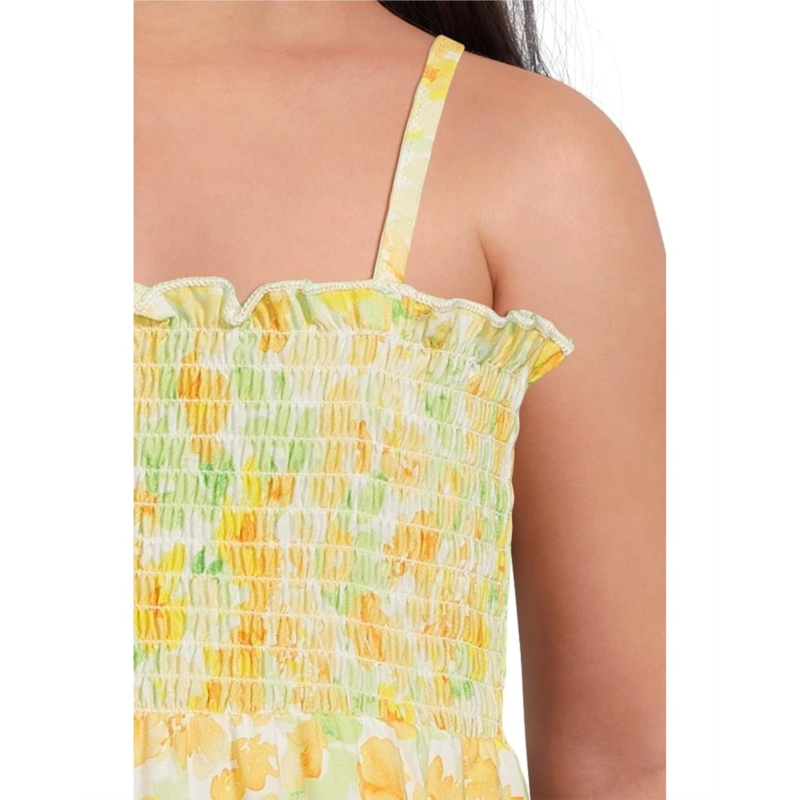 - The Appaman Kids Madison Dress is sure to make a statement with its beautiful details and comfortable fit. The below-knee-length A-line dress features a smocked bodice, adjustable spaghetti straps, and a ruffled hemline. It has allover iconic floral print for a playful touch.