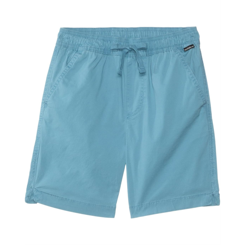 - Make your beach vacations and pool time more fun wearing the comfy Quiksilver Kids Taxer Shorts. The pull-on style shorts feature a low-rise elasticated waistband, a non-functional stitched down faux fly, a functional drawcord, and a short-length silhouette with a straight-leg style. Garment washed with heavy enzyme wash, the stretch poplin shorts come with front side entry pockets and single back patch pocket. Plus, the woven logo label on front & back pocket adds an authentic touch.