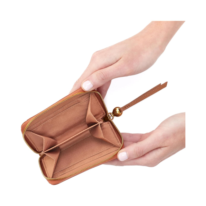 - This stylish HOBO Hart Card Case is made of luxurious leather material and features a convenient zippered top closure to keep your essentials secure. With two interior compartments, four credit card slots, and a key clip, this compact accessory is perfect for on-the-go organization.