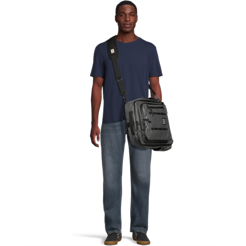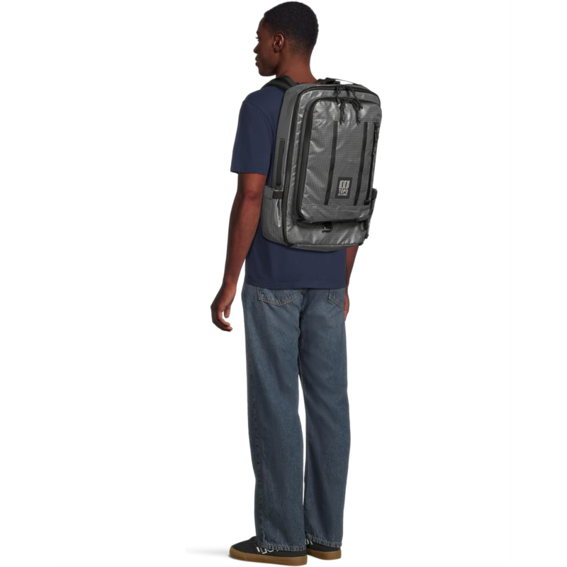 - An ideal one-bag travel companion, the carry-on compliant Topo Designs Apex Travel Bag 30l features weatherproof recycled ripstop nylon material, waterproof YKK zippers, and silicone-coated handles for durability. Agile and versatile with 3-way carry options, this travel backpack comes with internal organization, expandable side pockets, and an external 15-inch laptop compartment. It features a U-shaped entry to the spacious main compartment and a pass-through panel for rolling luggage attachment. This laptop backpack is designed with stowable padded shoulder straps, load-lifter straps, a sternum strap, and a removable waist belt for versatile carrying options. It meets airline carry-on requirements. Ideal for a long weekend getaway, it seamlessly integrates with the modular carry system for maximum versatility.