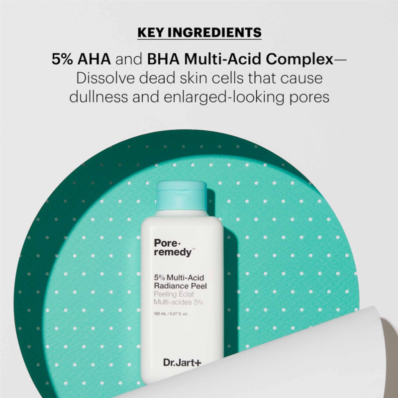 - AHA and BHA Multi-Acid Complex: Dissolves dead skin cells that cause dullness and enlarged-looking pores.
