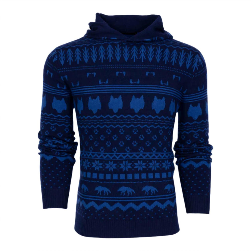 Whether you''re running around town or lounging at home, this sweatshirt works for both.Indulge in the Spirit Chaser Koko Hoodie by Greyson Clothiers, an epitome of sleek minimalism and effortless style. This men''s patterned hoodie in blue features long sleeves and a signature Spirit World all-over print, complemented by Greyson''s contrast tipping on the left sleeve. Crafted from a premium blend of 70% wool and 30% cashmere, it offers both luxury and comfort and employs a pull-on closure. This versatile piece is finished with a ribbed knit hem and sleeves, making it a perfect addition to any modern wardrobe.