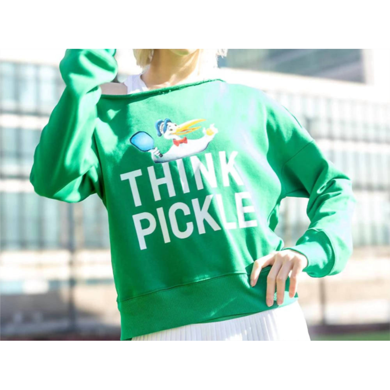 Cozy fabric, impeccable design - Meet the sweatshirt that you''ll never want to take off.Meet the Flash Sweatshirt by THINK ROYLN, a unique off-the-shoulder silhouette in striking Vlasic Pickle Green. The sweatshirt measures 20'' from shoulder to bottom edge for size S/M, with a chest width of 21''. Sleeves are 19'' long in size S/M, while neck width is 12''. Embrace effortless style designed exclusively in collaboration with Vlasic Pickles.