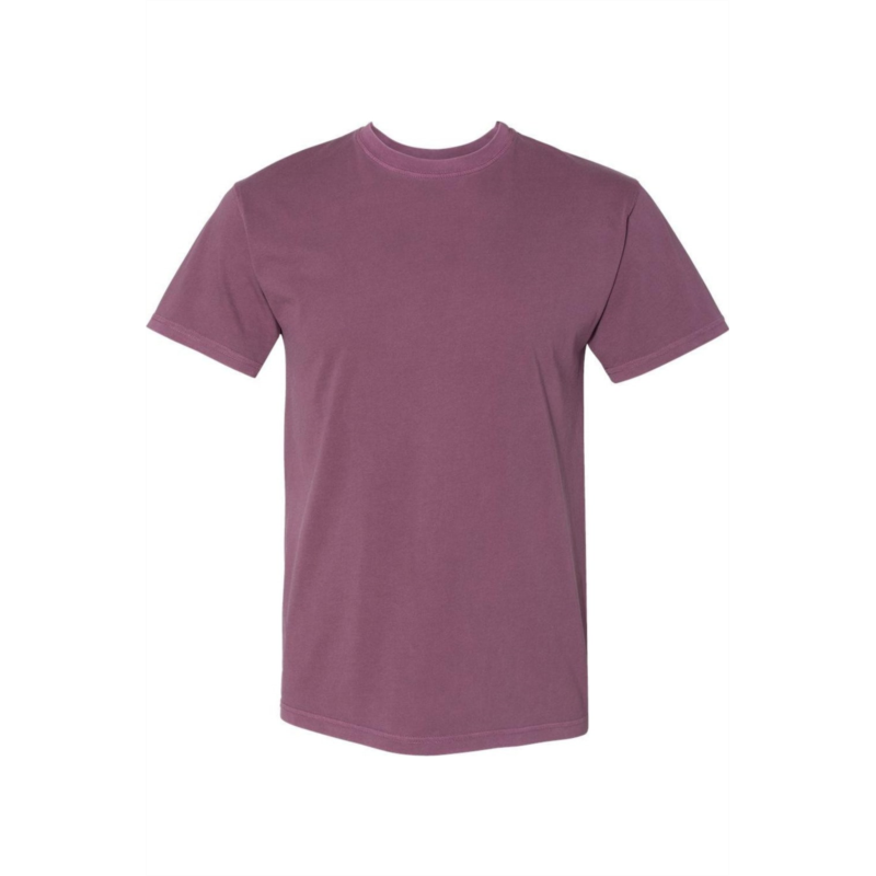 5.4 oz./yd, 100% combed ring-spun cotton, 24 single. 1x1 baby rib set-in collar with front coverstitch. Twill tape at back neck. Side seams. Tear away label. Due to the unique pigment dying process we suggest the following - Use methods and inks specific to avoiding dye migration When applying white ink, use a gray plastisol blocker under base, flash then poly white.