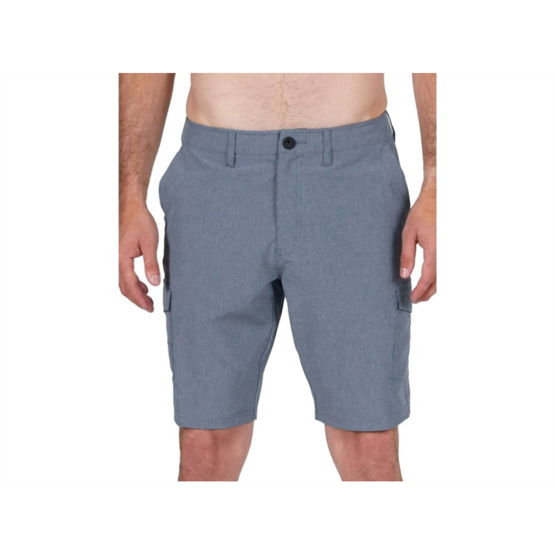The Drifter 2 Cargo Short by Salty Crew is a versatile hybrid piece crafted from a comfortable cotton blend in a solid navy color. Designed for men, this short features practical pockets and a button closure for secure functionality. Care is effortless with machine wash and tumble dry instructions, making it ideal for everyday wear. A perfect addition for those who prioritize style and convenience.