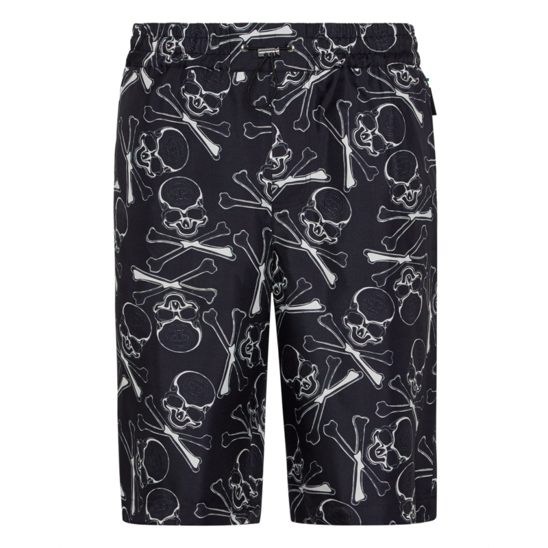 [US] PHILIPP PLEIN silk short trousers skull&bones