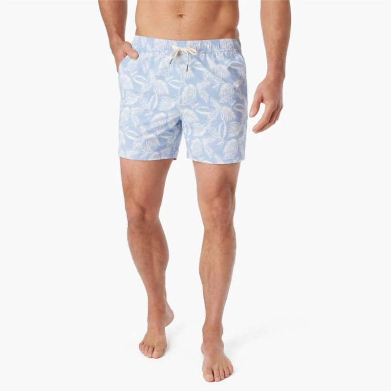 Experience laidback days with the Bungalow Trunk by Fair Harbor, in a playful Sky Blue Leaves pattern. This retrokorea trunk is crafted from 88% recycled nylon and 12% spandex, featuring a comfortable pull-on closure. The 5-inch inseam, bright interior BreezeKnit liner, and 4-way stretch performance fabric offer a sleek, carefree fit. Practical details like a hidden zipper back pocket with a keyring and sleek side pockets with advanced water draining technology make this trunk naturally odor-resistant and perfect for quick drying.