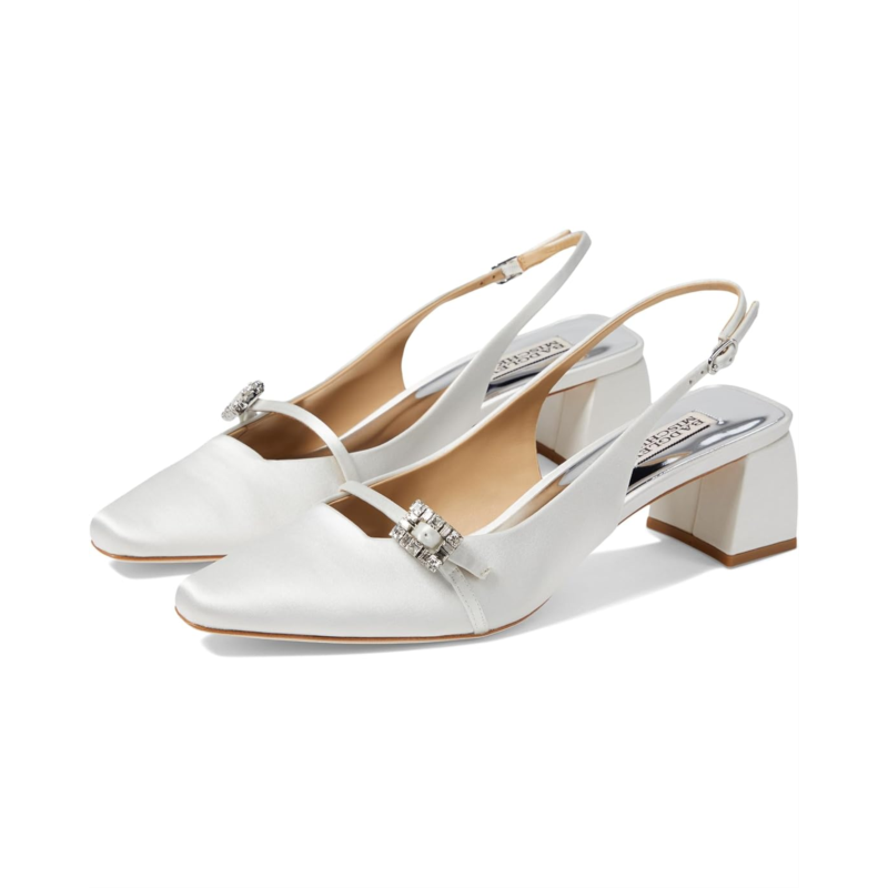 Step into the finest finesse wearing Badgley Mischka Buena Pumps. The low-top footwear features silk upper with buckle adjustable slingback strap closure and pointed toe silhouette.