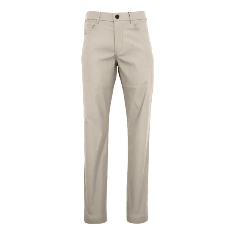 Elevate your wardrobe with the Men''s Wainscott Five Pocket Trouser by Greyson Clothiers, crafted in a solid oat color. These trousers feature a relaxed fit with a tapered leg, designed from 100% polyester and equipped with a button closure for a secure fit. The antimicrobial and moisture-wicking material, combined with a sport waistband, ensures comfort throughout the year. Care is simple with machine wash and tumble dry instructions, making these pants as practical as they are stylish.