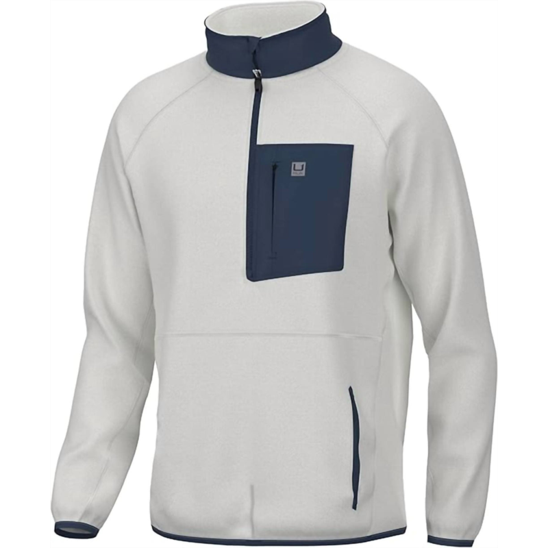 [US] HUK mens waypoint fleece 1/2 zip jacket in egret
