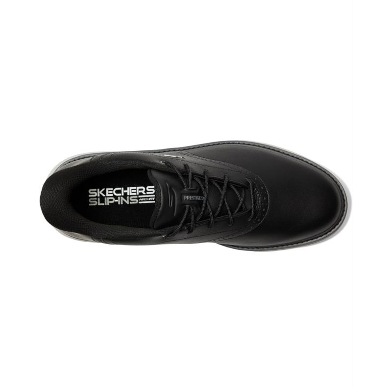 - The Skechers GO GOLF Prestige Slip-In ArchFit Spikeless Golf Shoe shows is the perfect combination of classic style and performance. The Skechers Hands Free Slip-ins technology makes putting on the shoes a breeze. The patented Skechers Arch Fit insole system with podiatrist-certified arch support can help alleviate aches throughout the body, improve balance, and allow for the proper dispersion of weight across the foot to reduce fatigue. The upper material is made out of full grain leather in a classic styling.