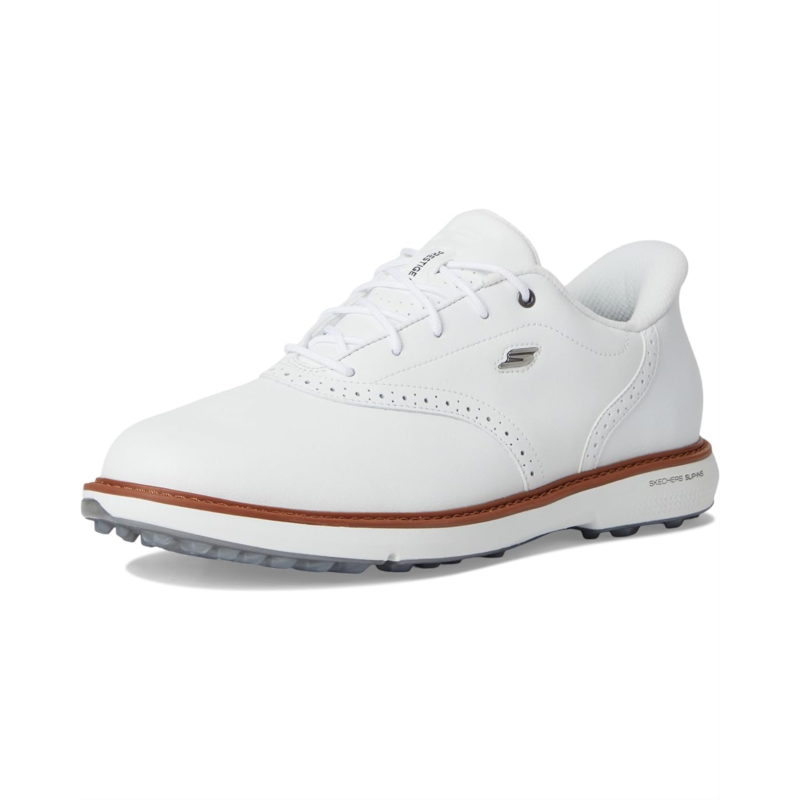 • The Skechers GO GOLF Prestige Slip-In ArchFit Spikeless Golf Shoe shows is the perfect combination of classic style and performance. The Skechers Hands Free Slip-ins technology makes putting on the shoes a breeze. The patented Skechers Arch Fit insole system with podiatrist-certified arch support can help alleviate aches throughout the body, improve balance, and allow for the proper dispersion of weight across the foot to reduce fatigue. The upper material is made out of full grain leather in a classic styling.