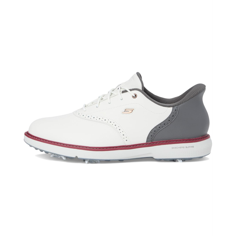 • The Skechers Go Golf Prestige Slip-In ArchFit Spiked Golf Shoe is the perfect combination of classic style and performance. The Skechers Slip-In technology makes putting on the shoes a breeze. The podiatrist recommended ArchFit support can help alleviate aches throughout the body, improve balance, and allow for the proper dispersion of weight across the foot to reduce fatigue. The upper material is made out of full grain leather in a classic styling. The soft spikes are replaceable. Crafted from cotton lining, and leather insole, this pair of shoes features round toe, lace-up closure, mid-top silhouette, Echo flight midsole, and brand detailing on the tongue, and footbed.
