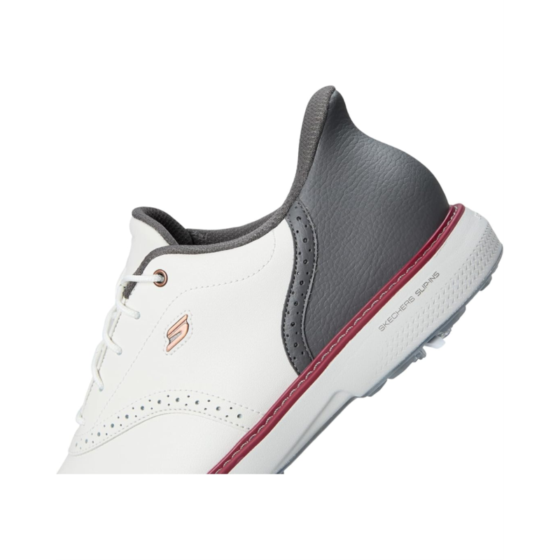 - The Skechers Go Golf Prestige Slip-In ArchFit Spiked Golf Shoe is the perfect combination of classic style and performance. The Skechers Slip-In technology makes putting on the shoes a breeze. The podiatrist recommended ArchFit support can help alleviate aches throughout the body, improve balance, and allow for the proper dispersion of weight across the foot to reduce fatigue. The upper material is made out of full grain leather in a classic styling. The soft spikes are replaceable. Crafted from cotton lining, and leather insole, this pair of shoes features round toe, lace-up closure, mid-top silhouette, Echo flight midsole, and brand detailing on the tongue, and footbed.