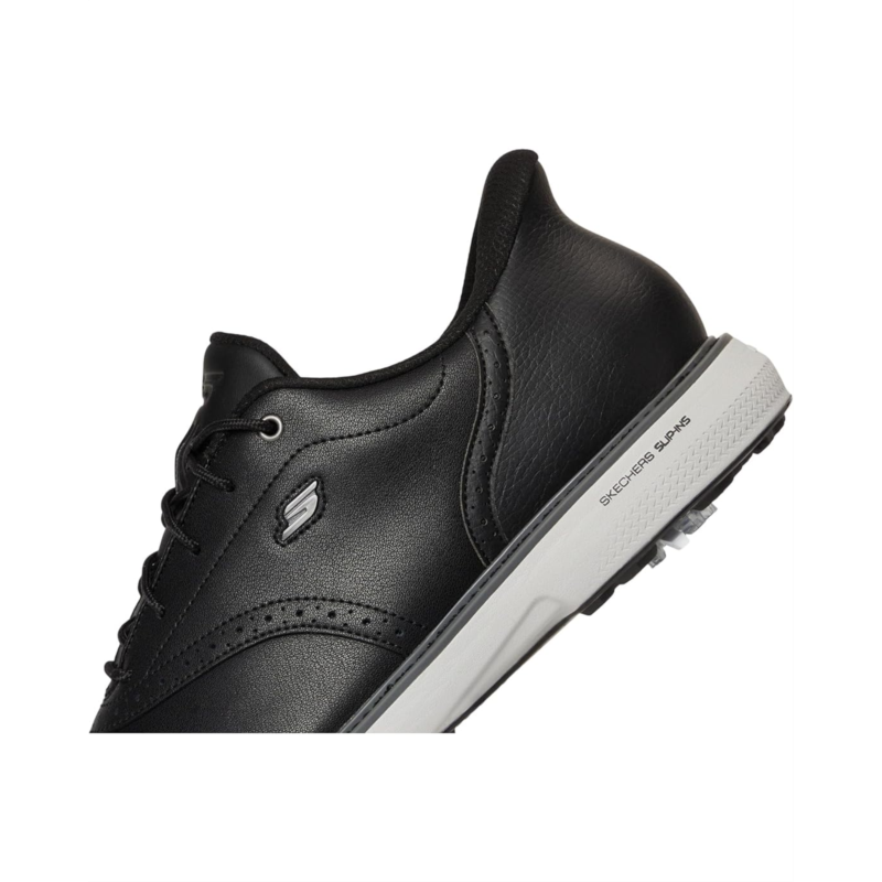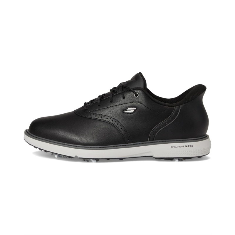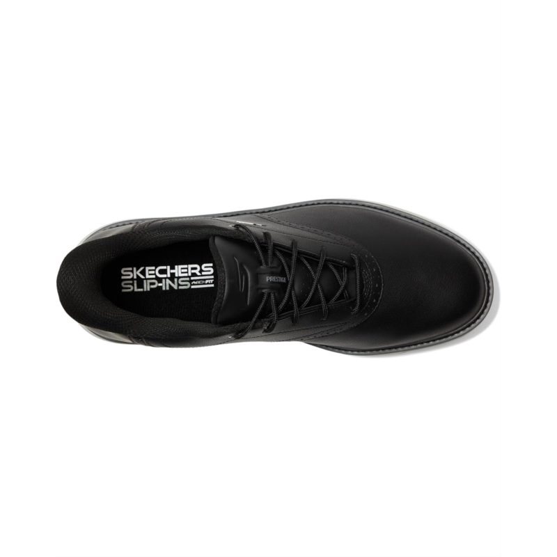 - The Skechers Go Golf Prestige Slip-In ArchFit Spiked Golf Shoe is the perfect combination of classic style and performance. The Skechers Slip-In technology makes putting on the shoes a breeze. The podiatrist recommended ArchFit support can help alleviate aches throughout the body, improve balance, and allow for the proper dispersion of weight across the foot to reduce fatigue. The upper material is made out of full grain leather in a classic styling. The soft spikes are replaceable. Crafted from cotton lining, and leather insole, this pair of shoes features round toe, lace-up closure, mid-top silhouette, Echo flight midsole, and brand detailing on the tongue, and footbed.