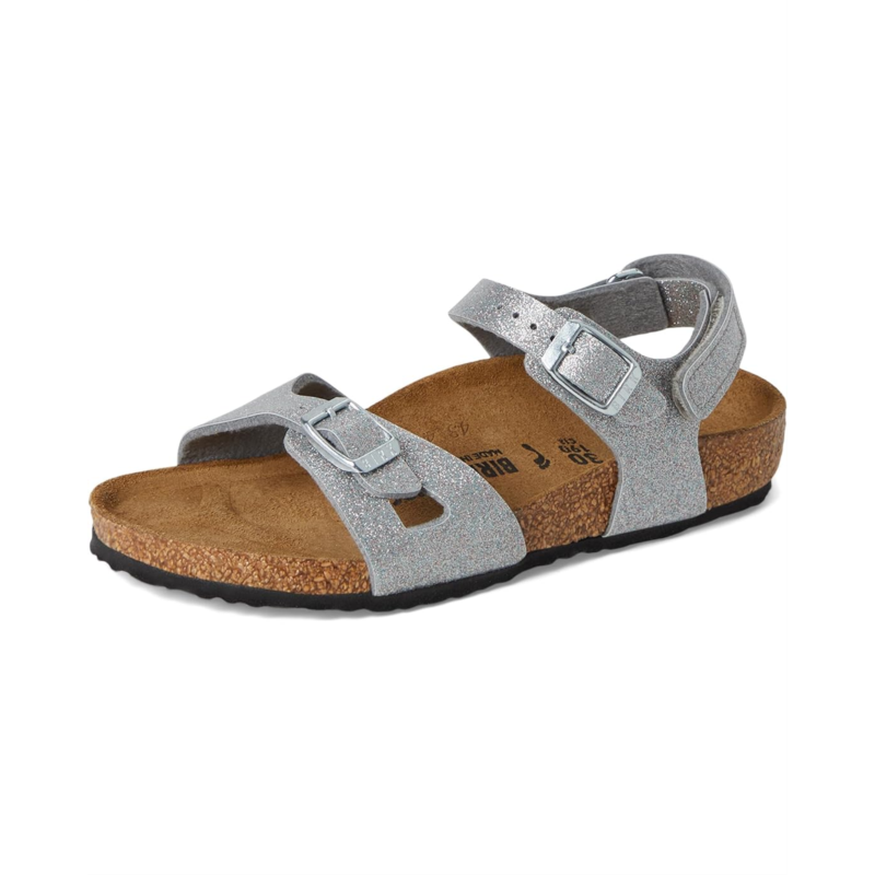 Birkenstock Kids Rio Hook and Loop - Silver Sparkling (Toddler/Little Kid/Big Kid)
