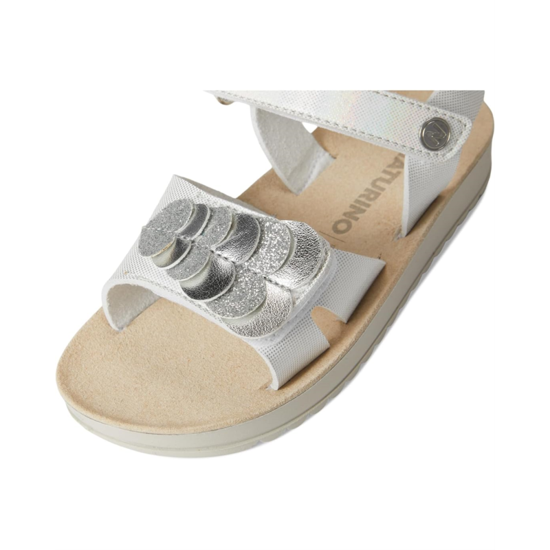 - The Naturino Gisten sandals are adjustable sandals with multi-heart detail. Flexible and lightweight, these kid''s sandals are made of a faux leather upper, insole, and lining. The hook-and-loop strap offers a secure fit. These slip-on sandals are perfect to style up your kid''s looks and outfits.